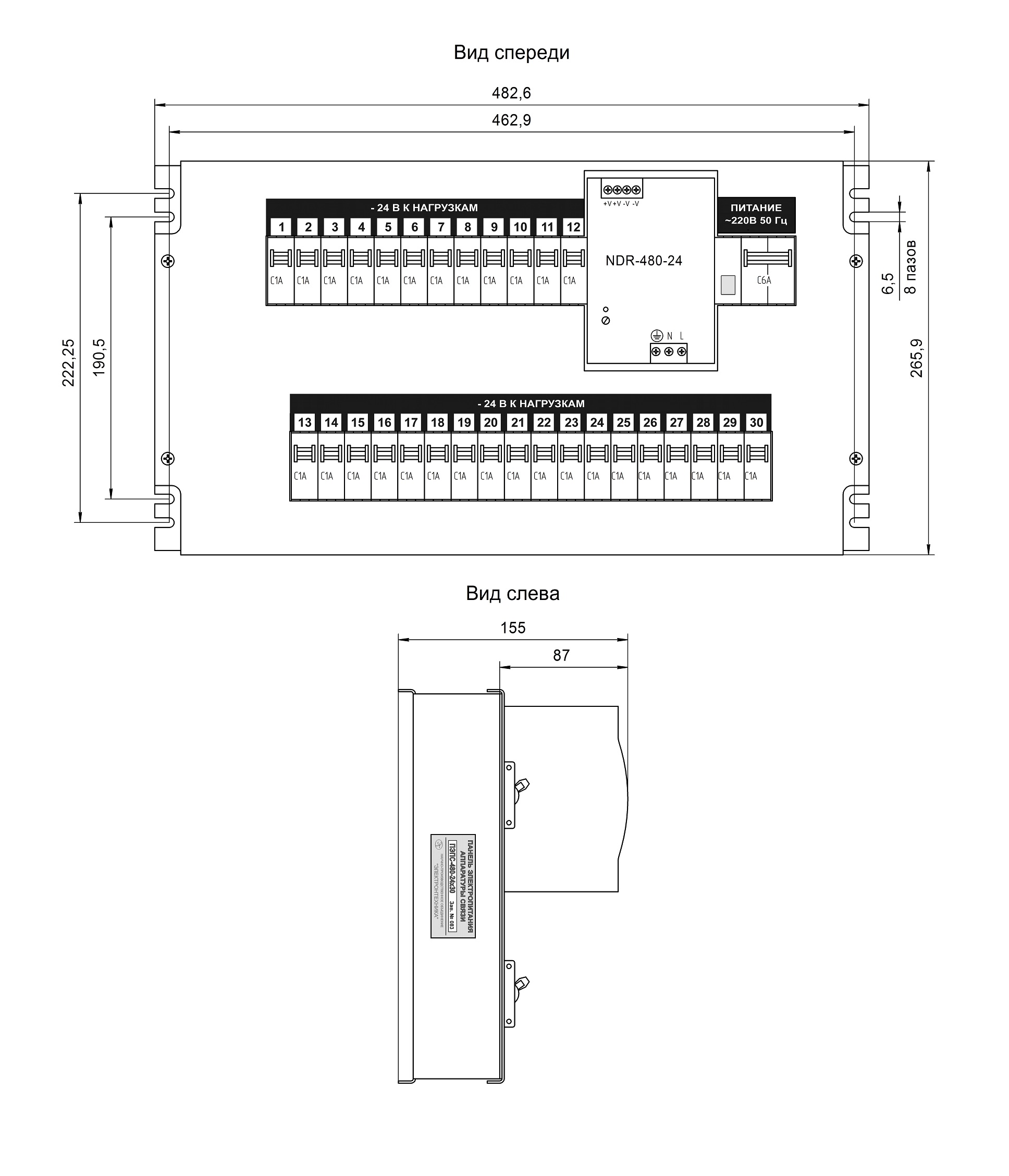 Габаритные размеры не более 482,6х265,9х155,0 мм