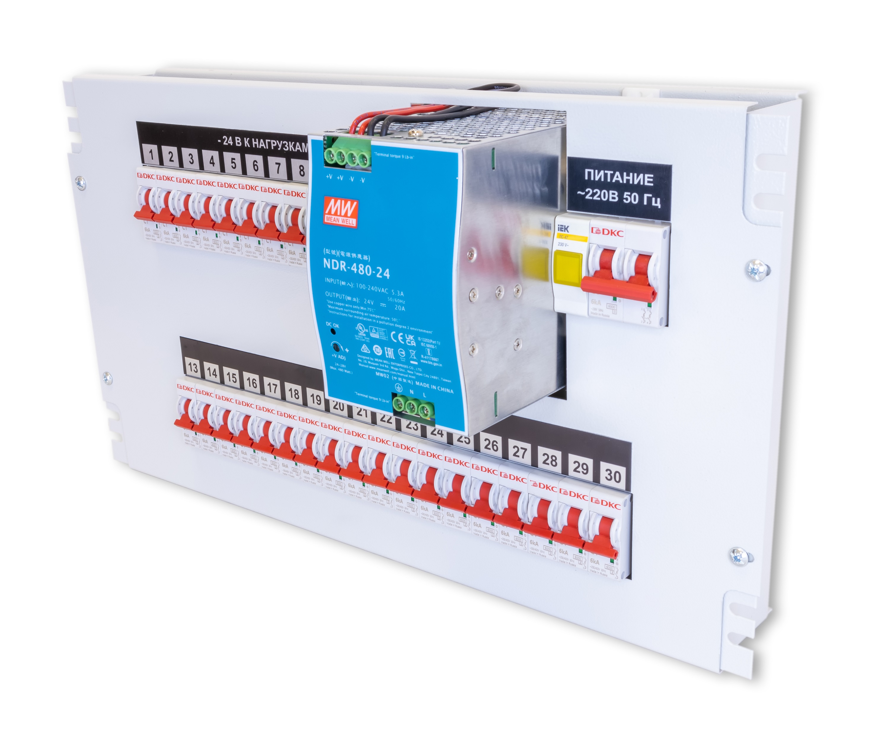 | Количество выходов постоянного напряжения 24 В с максимальным током 1 А | 30 |