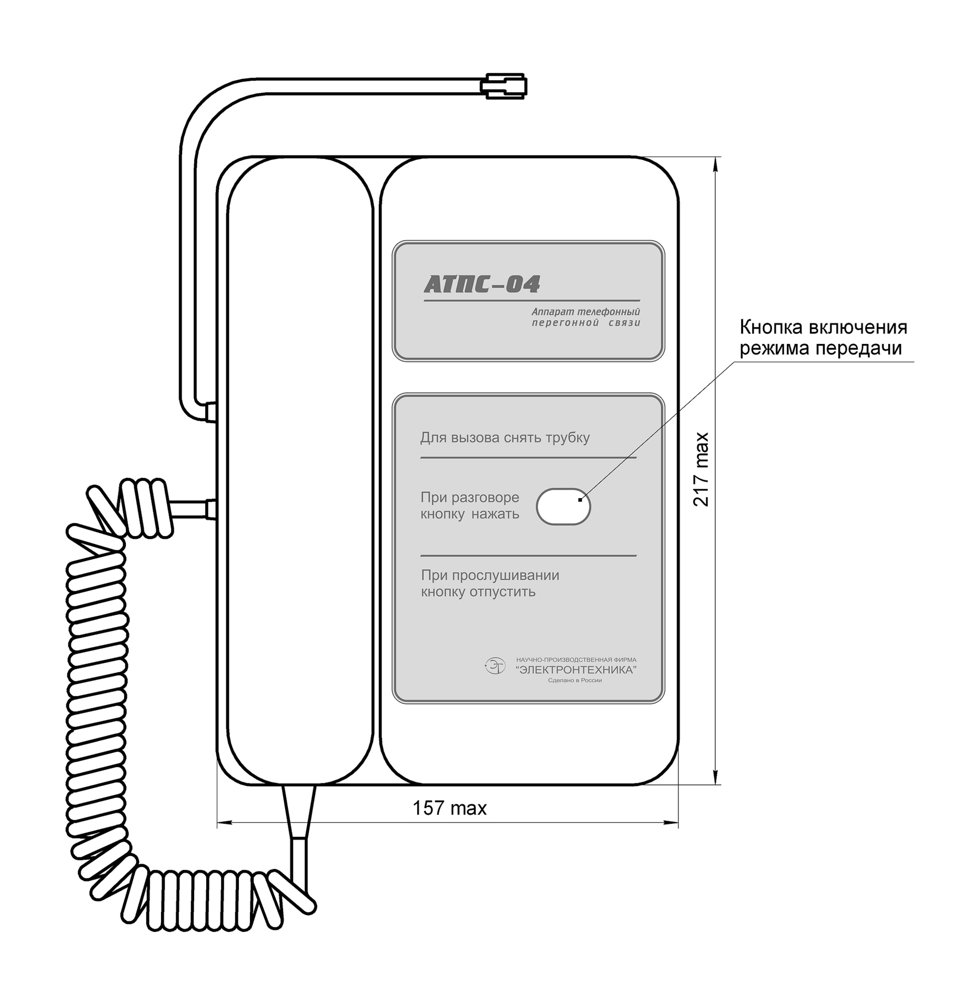 Телефон выполнен в пластмассовом корпусе настольного исполнения со встроенным прибором звуковой сигнализации