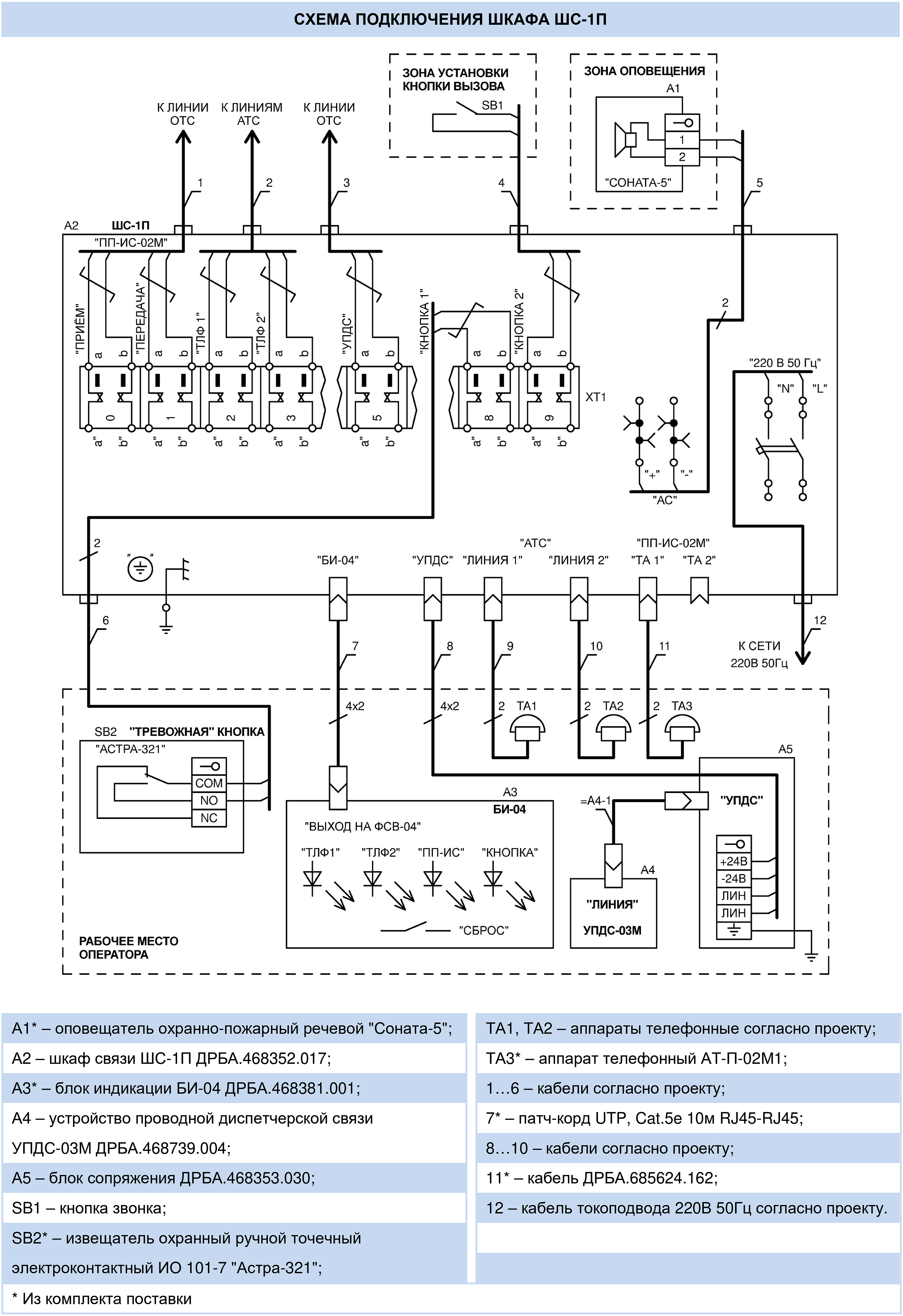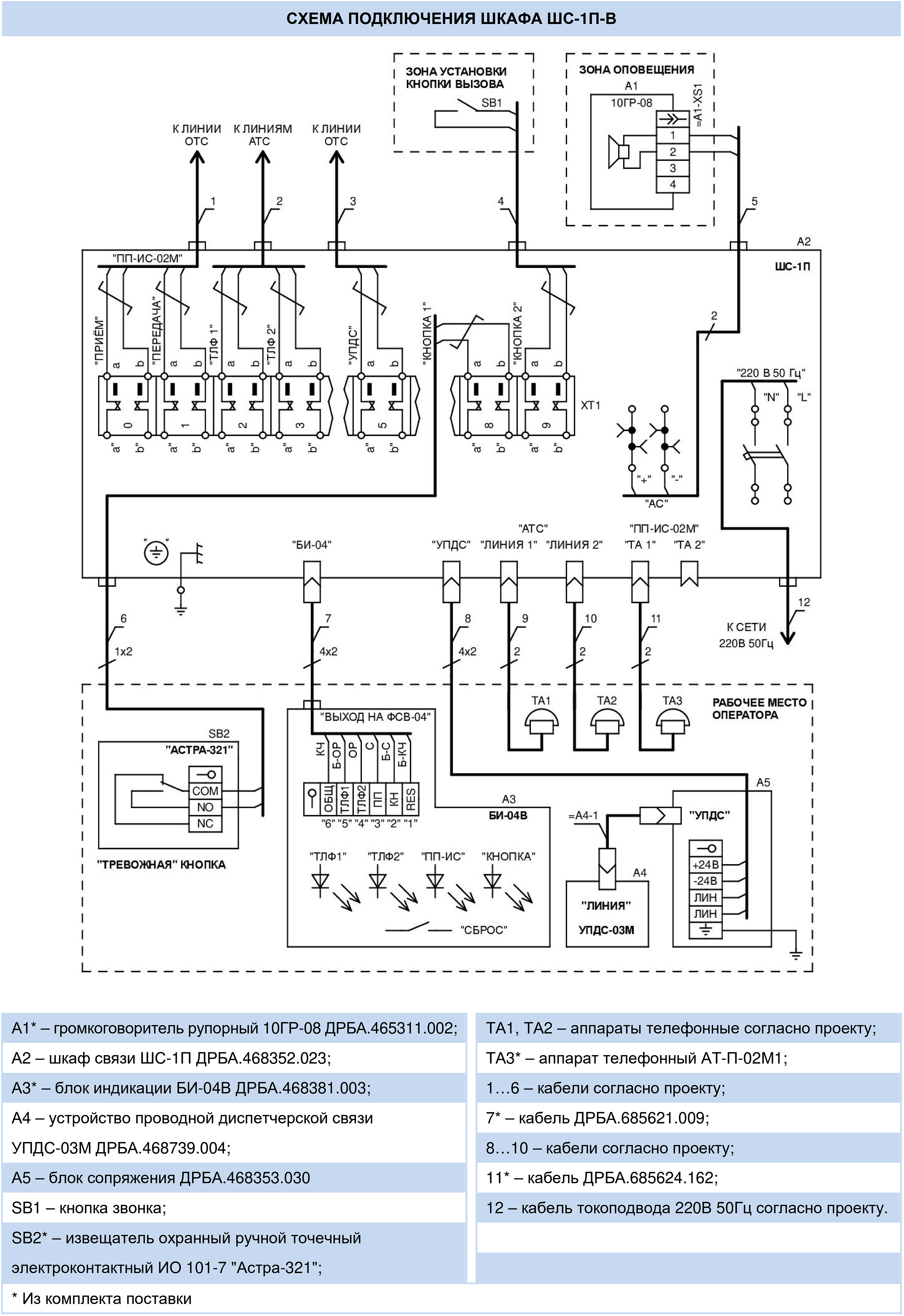 | Шкаф связи ШС-1П-В Схема электрическая принципиальная |