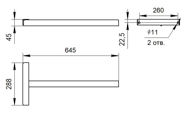 560х1530х44 мм | 288х45х645 мм | 300х40х40 мм |