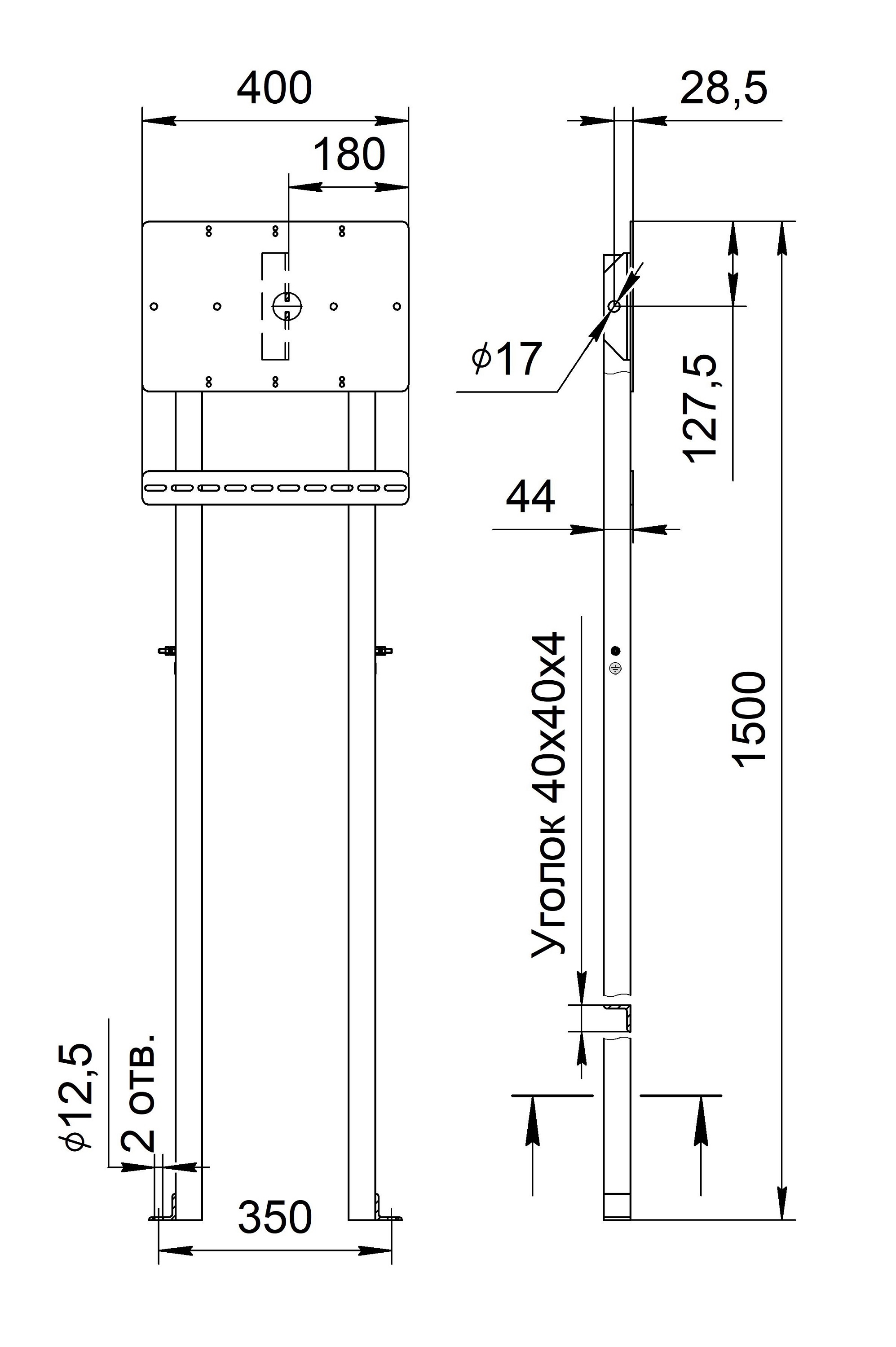 ОБЩИЙ ВИД, ГАБАРИТНЫЕ И УСТАНОВОЧНЫЕ РАЗМЕРЫ СТОЙКИ