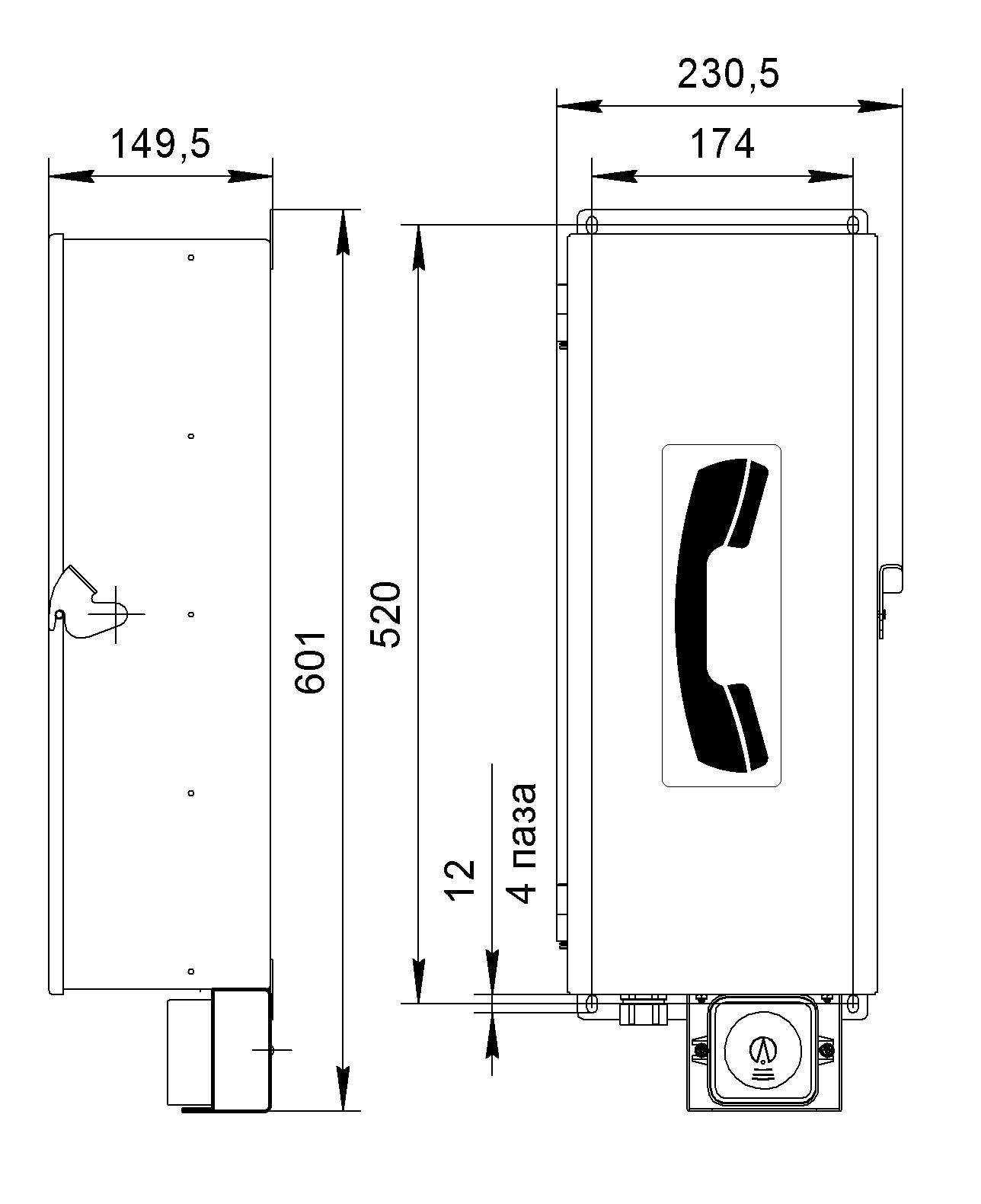 Габаритные размеры не более 601х230х150
