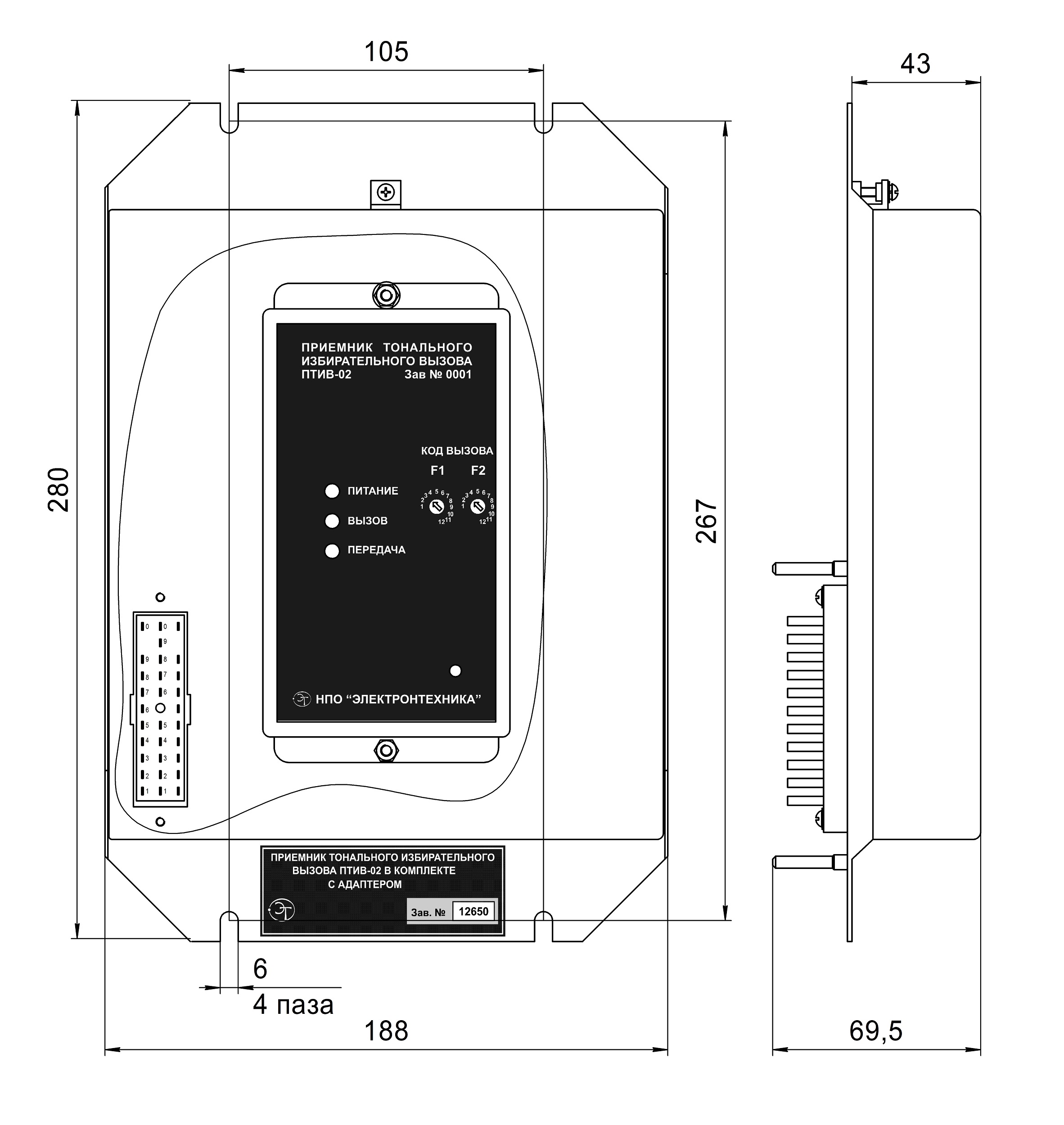 | Приёмник тонального избирательного вызова ПТИВ‑02 в комплекте с адаптером | 1 шт. |